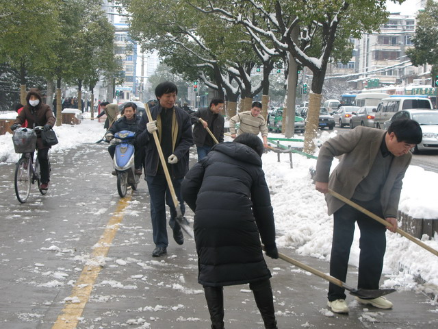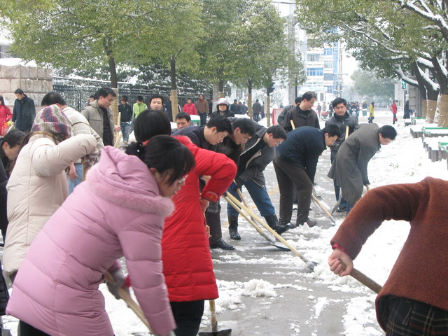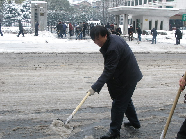 公司全體員工不顧天寒地凍,熱火朝天的在街頭揮鍬鏟雪,迅速清除了公司院內(nèi)、門前及榮事達(dá)大道市府廣場至壽春路段交通主干道的路面積雪,保證了公司出入車輛及門前交通干道的行車安全,受到市民的贊許。